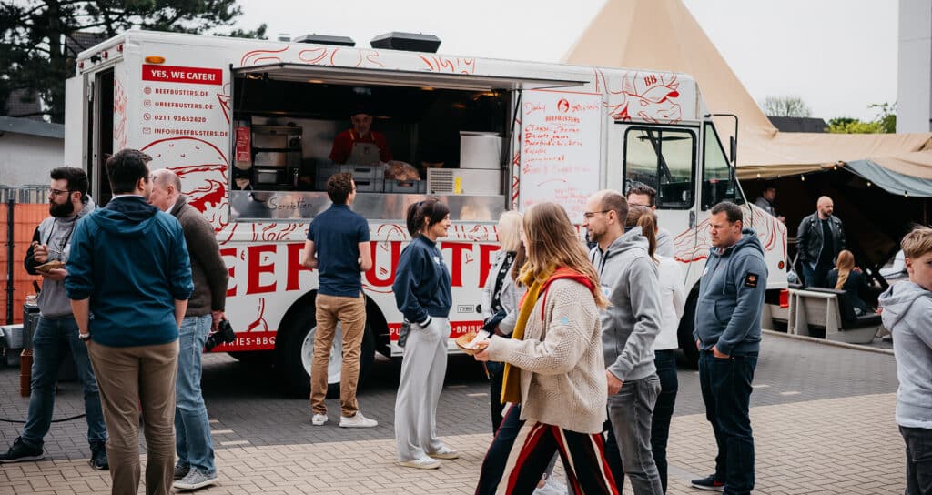 Erlebnisfaktor: Hier liegt der wahre ROI. Ein Food Truck ist Entertainment. Der Duft von frisch gegrilltem Fleisch, das Zischen der Plancha – das schafft eine Atmosphäre, die ein Edelstahl-Buffet im Konferenzraum niemals erreichen kann. Du zahlst also einmal und erhältst Verpflegung + Eventmodul in einem.